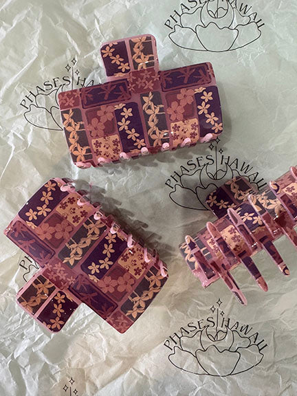Original Phases Hawaii Pua Kuiki claw clip, designed for both style and function. This medium hair claw works on all hair types, textures, and lengths. Measures approximately 3.5"