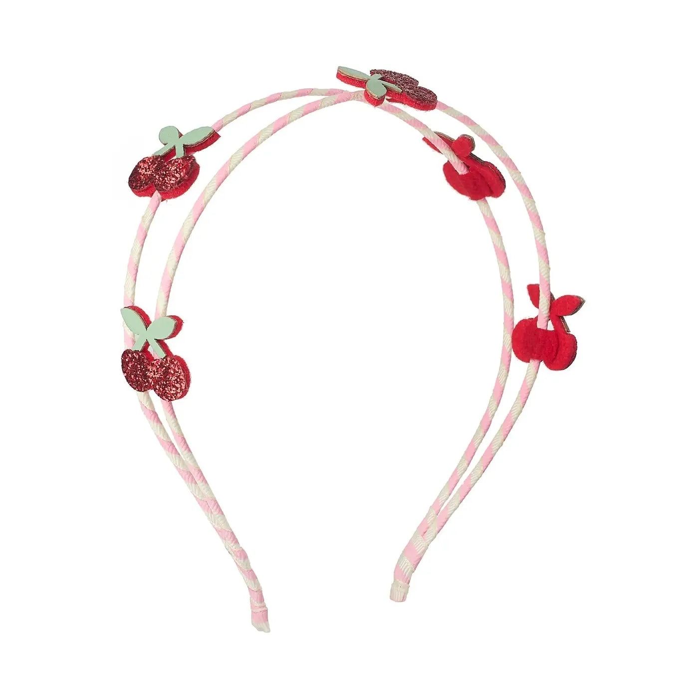 Cherry picked just for you! The most gorgeous headband for spring, featuring glittering cherries and wrapped in stripy grosgrain fabric, this headband is a comfy wear for little heads.