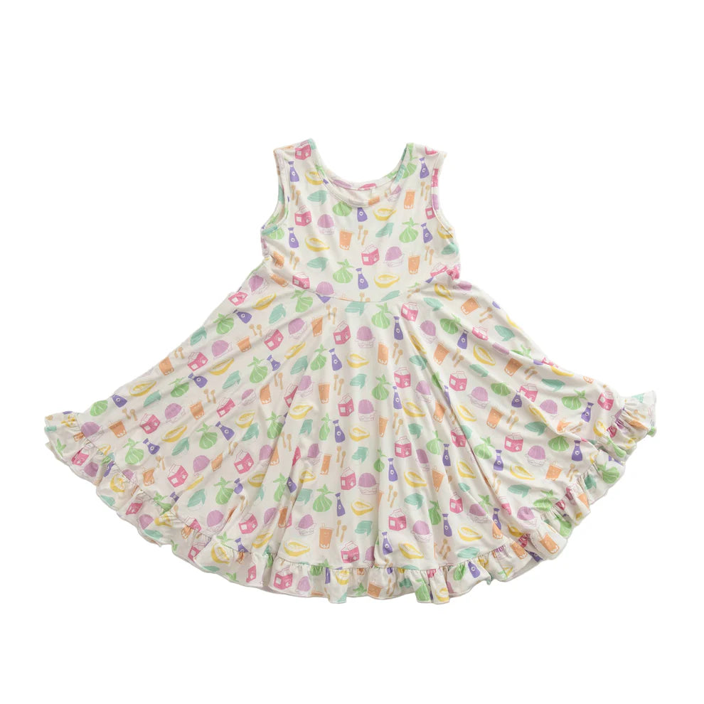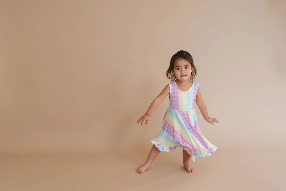 Meet the happiest dress on the block! Little ones love to show off this dress's ruffled skirt with a spin. Made with supersoft, stretchy bamboo to grow with your keiki.
