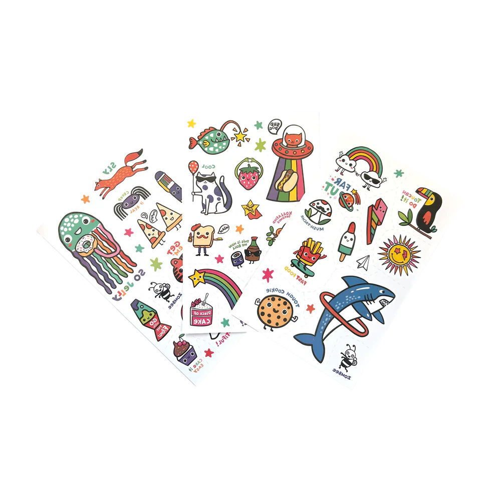 Let creativity shine with the Tattoo-Palooza Glow in the Dark Temporary Tattoos - Bright & Funny! This set of 3 tattoo sheets is packed with temporary tattoos that glow in the dark, featuring playful, silly, and colorful designs that kids will love. Whether it’s funny faces, quirky shapes, or silly characters, these tattoos for kids add a fun and glowing touch to any adventure.
