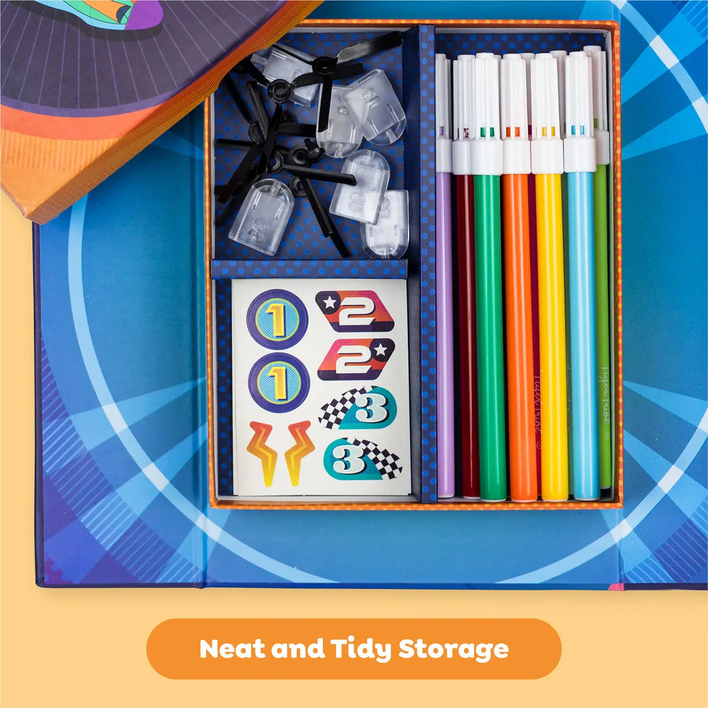 This comprehensive activity set contains pop-out planes primed for decoration with included stickers and vibrant markers. Color and decorate the planes then construct the planes with propellors and aerodynamic protective nose cones to ensure a smooth flight, and the large format target sheets transition the creative activity into a fun game of skill.  Recommended for kids aged 5-9 years