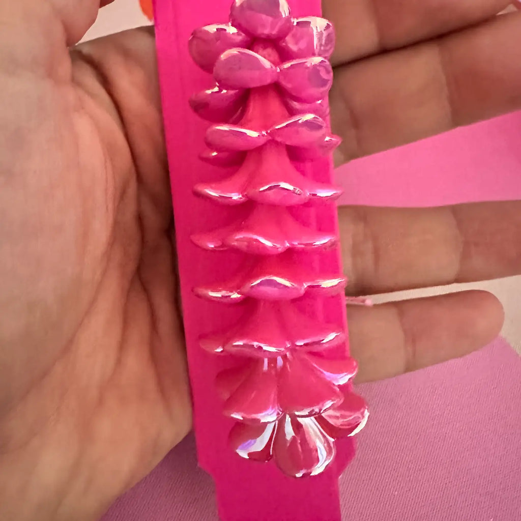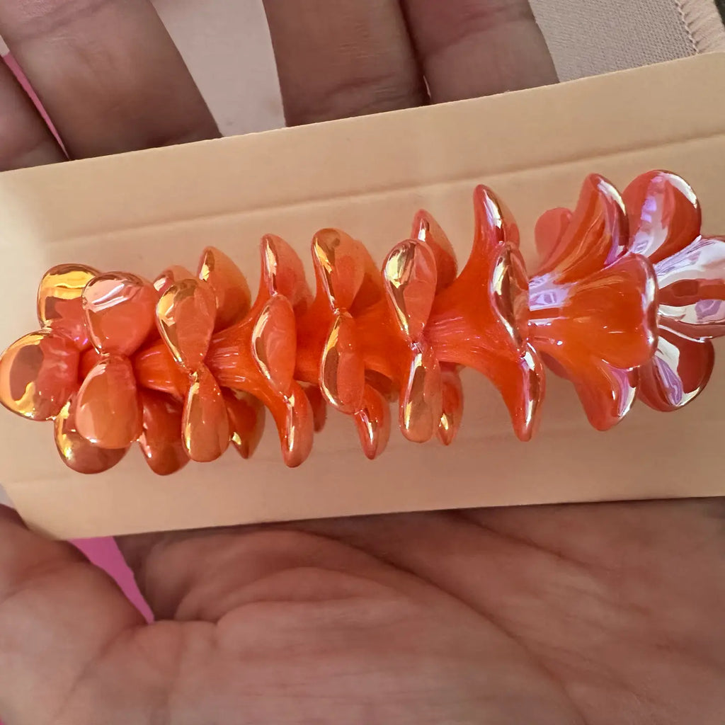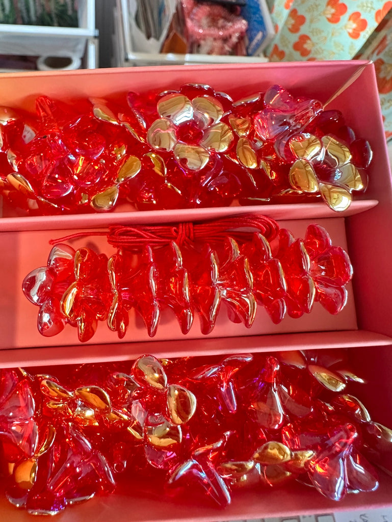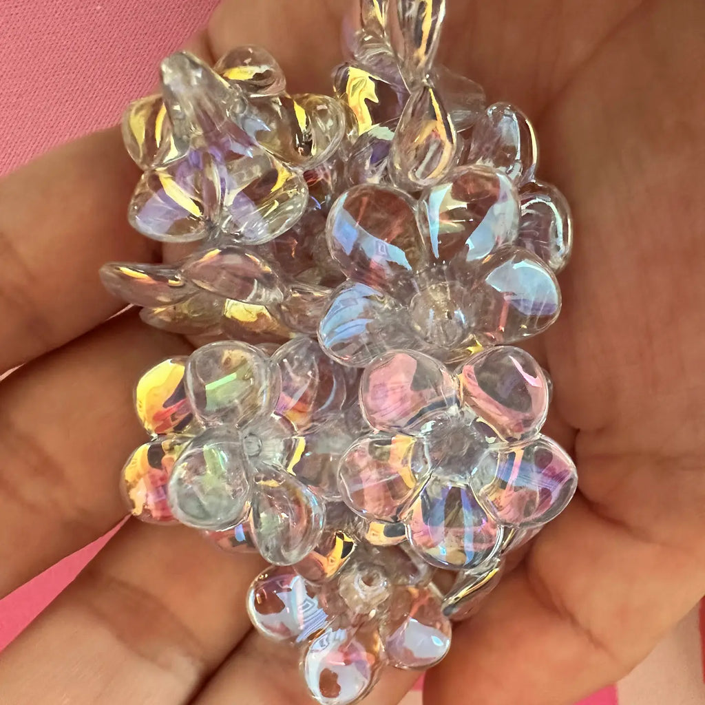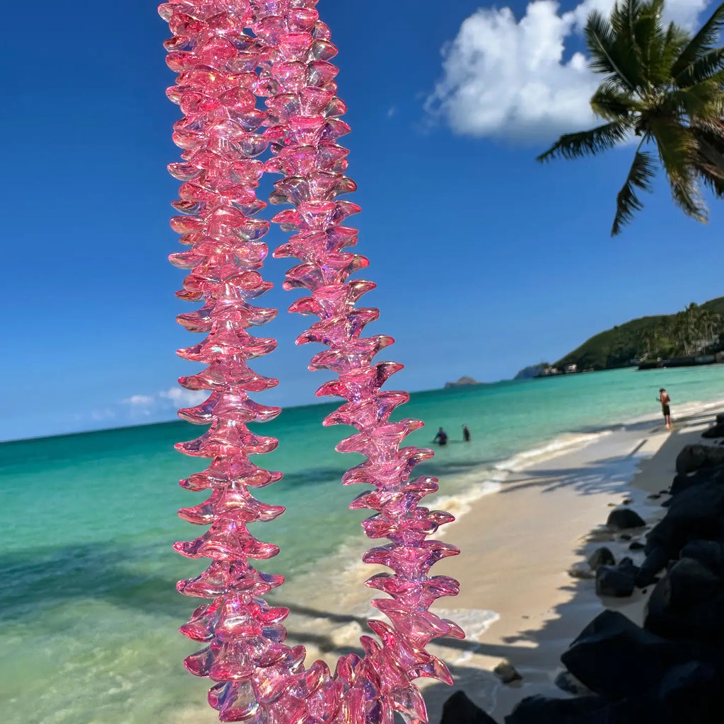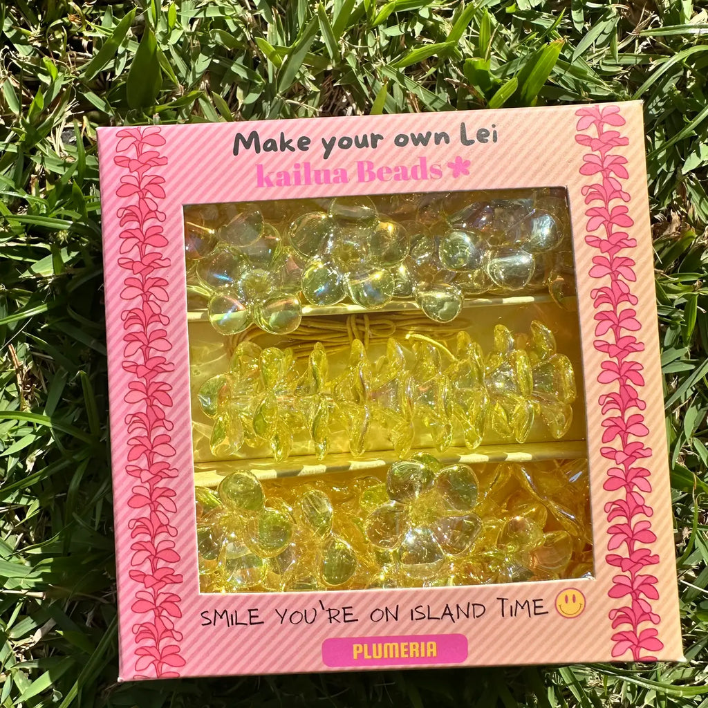 Beautiful Plumeria acrylic beads with an electroplated coat to make them extra shiny just like you! There are about 60 beads that make a lei perfect size for kids. An elastic thread is included.