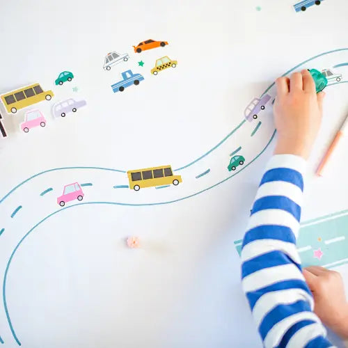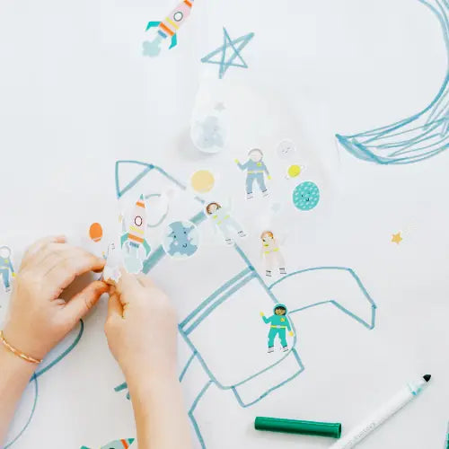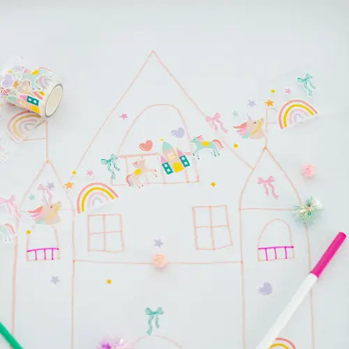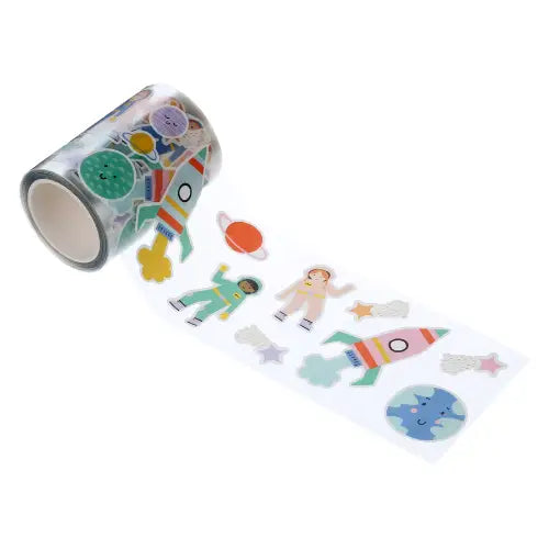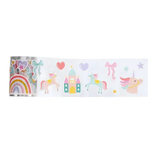 Add a touch of enchantment with this beautiful unicorn sticker roll; speedy fun with the vehicle sticker roll; or intergalactic magic with the outer space roll! Each roll features over 200 whimsical designs on approximately 16 feet of washi-style material, these stickers are easy to peel and perfect for decorating anything from travel journals to craft projects. Their flexible, thin design makes them ideal for little hands and big creative ideas.