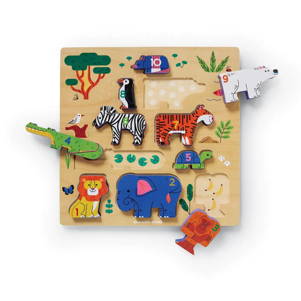 MULTI-LANGUAGE NUMBERS, SHAPES, COLORS WOODEN TRAY PUZZLE