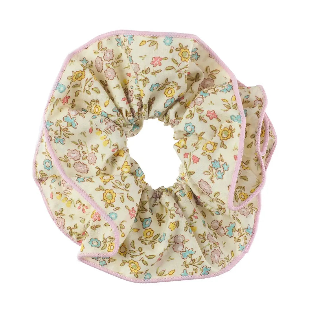 Bloom this spring in our gorgeous double layer petal print scrunchie. Made in soft fabric, with a sweet pink trim. Perfect for any little bun or ponytail!