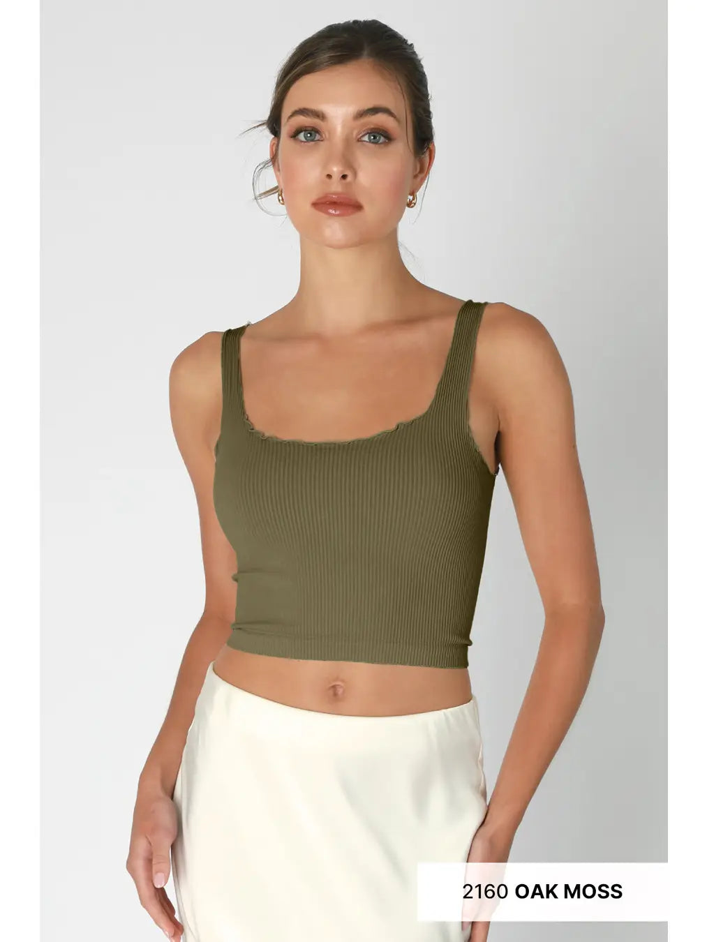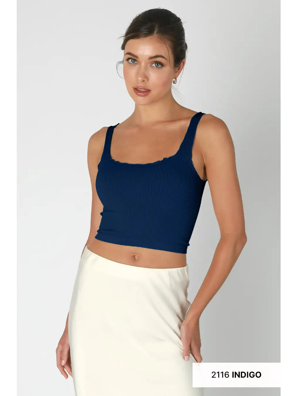 LETTUCE EDGE CROP TANK, ONE SIZE: A seamless, classic-ribbed tank top with a fluttery, feminine lettuce edge to add a little more to a timeless silhouette.