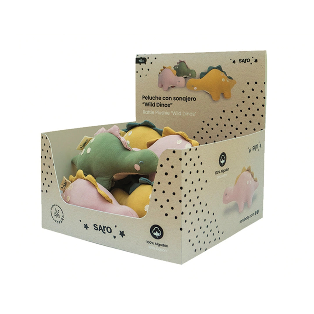 Don't let the fun stop! With this dino your little one will be entertained for hours to the rhythm of rattle. Promotes hand-eye coordination and stimulates the natural curiosity of the baby. A soft and squishy 100% cotton playmate that will keep him entertained for hours, specially designed for his little hands!