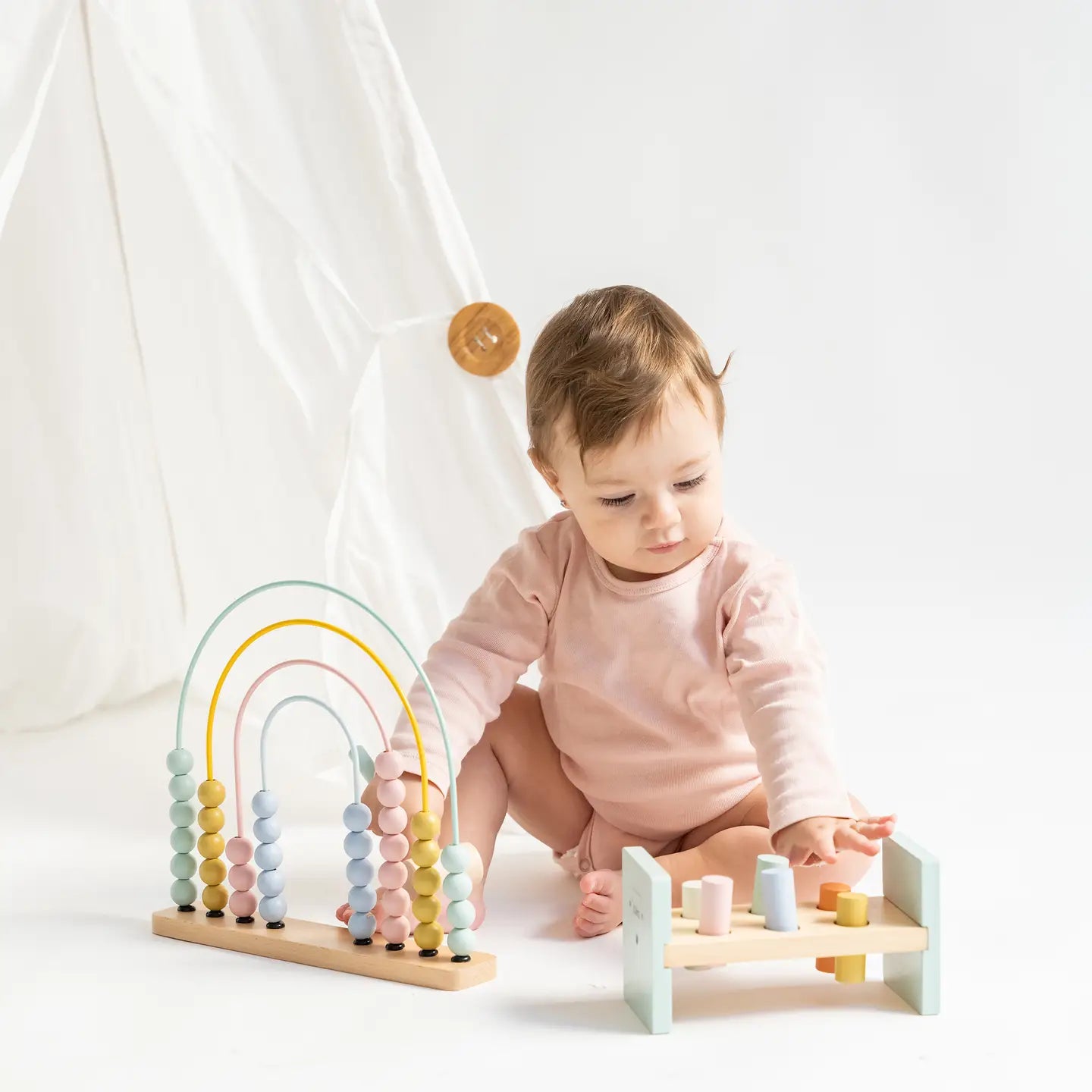 Learning to count will be easy with this abacus--so cool. Moving its balls from one side to another your little one will develop fine motor skills while learning numbers and colors. A great design, to learn while playing. In addition, thanks to its beautiful rainbow-shaped design, it is also an ideal decorative detail for your room or play area.