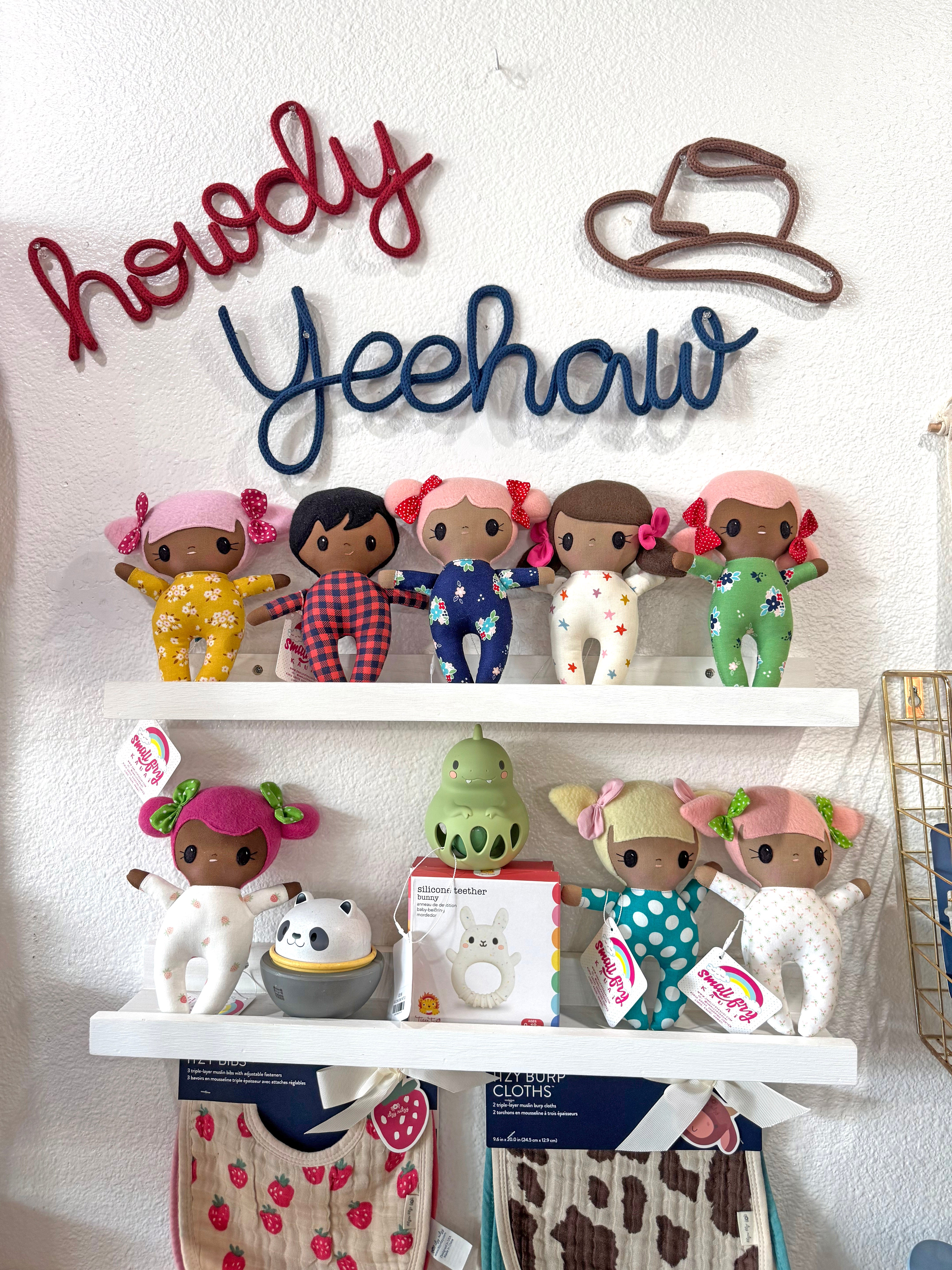 Share some western vibes on your bookshelf, hanging on your wall, or perched on your desk . These charming signs are made with hand-knit 100% cotton yarn over hand-bent aluminum wire to add the perfect whimsy to your room decor.