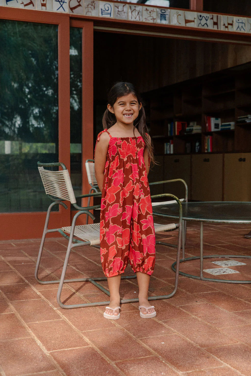 The Lyla Jumpsuit is a stylish and playful jumper, perfect for all day fun. Featuring thin straps, a comfy smocked bodice, and wide-leg pants cinched with elastic at the ankle, it's the perfect mix of cute and comfy. The Lyla Jumpsuit is cute, comfortable, and made for play. Ethically made in Bali, Indonesia.