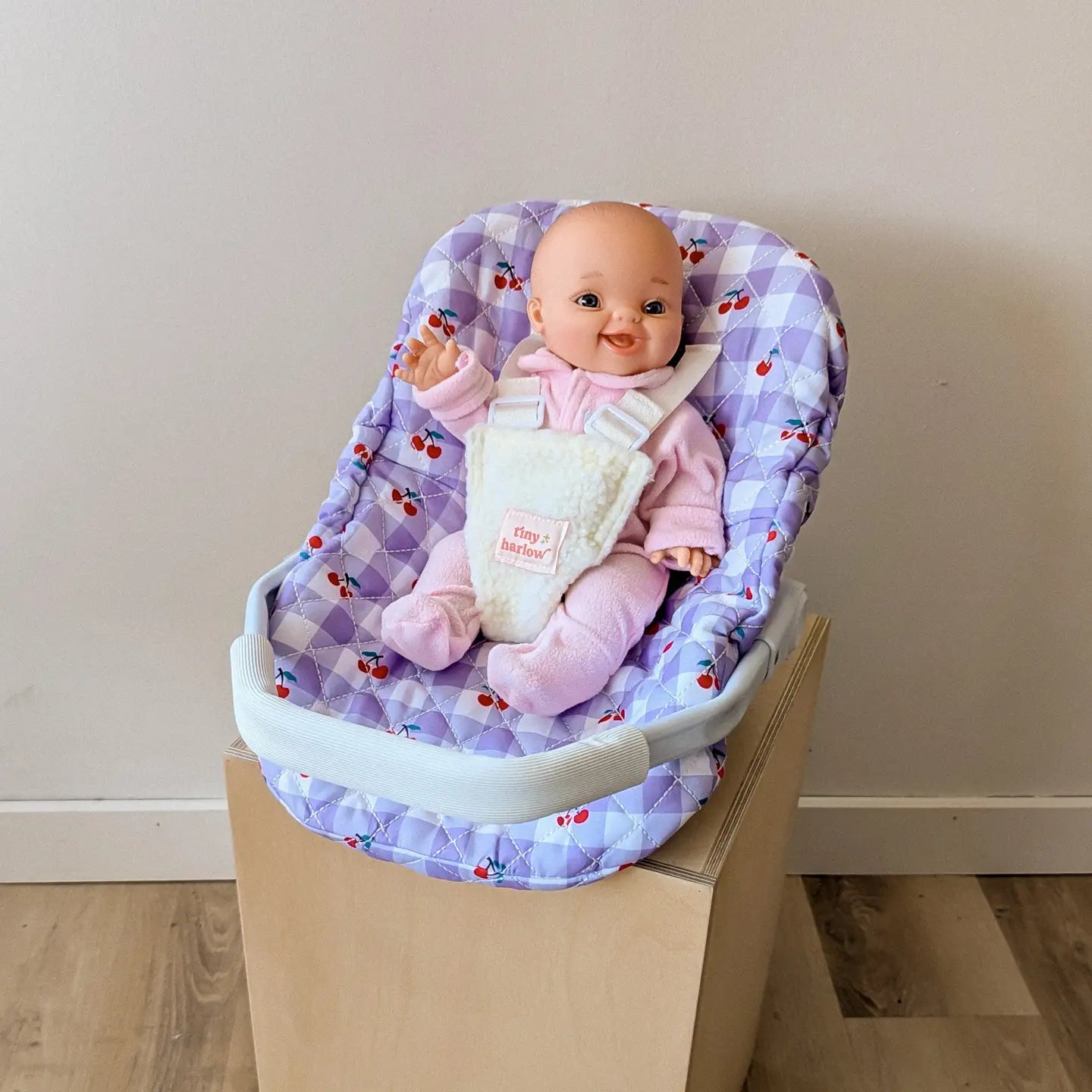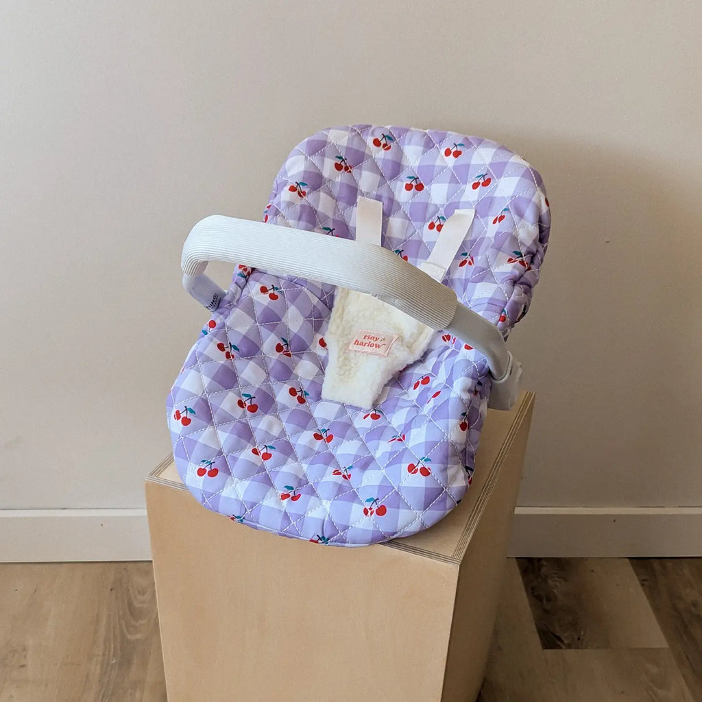 Perfect companion to car rides and road trips, our Dolls Car Seat Capsules can be set in two positions. Carry your dolly around with the handle or sit up when the handle is put in the down position which also allows little ones to rock their dolly to sleep.