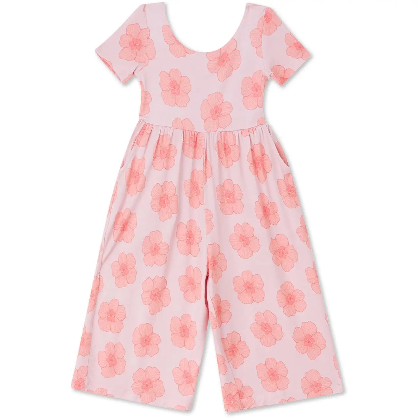 WIDE LEG JUMPSUIT // - Mauve Hibiscus / 7-8Y is backordered and will ship as soon as it is back in stock.
